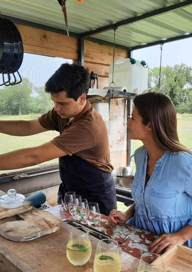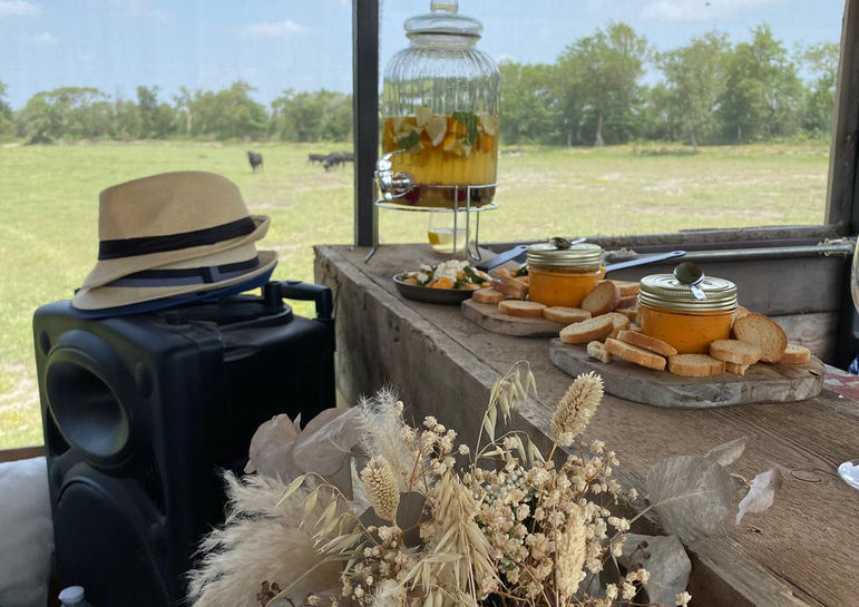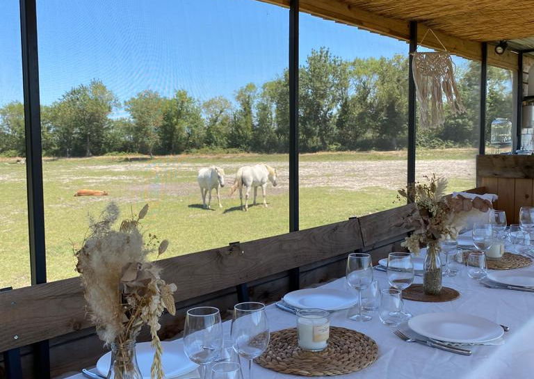 Grâce à une vue panoramique, vous pourrez y observer les taureaux et chevaux typiques de la région évoluant à leur rythme dans des espaces naturels à perte de vue, tout en profitant de votre repas dans une ambiance conviviale.